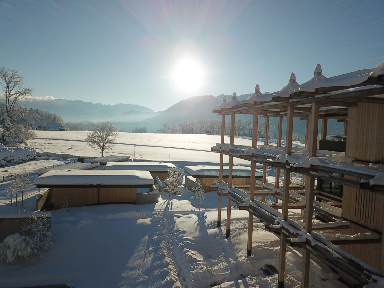 Diese Suite besticht durch den großen privaten Garten mit herrlichem Ausblick auf die Voralpen. Auf deiner Sonnenterrasse verzaubert dich dein eigener kleiner Pool, gefüllt mit GRANDER Wasser, sowie eine spektakuläre Außendusche. Die Suite ist stilvoll eingerichtet mit einem herrlichen Design-Badezimmer mit bodenlangem Panoramafenster, sowie einer Kitchenette mit Kühlschrank und Nespresso-Maschine. Auch ein Teekocher, sowie Tee ist vorhanden. Der große Flatscreen-TV sucht seinesgleichen. Ideal für Hundebesitzer, wegen des direkten Gartenzugangs.